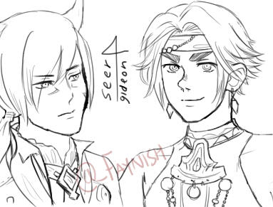 Faenish Cadfael was born to a family of nigh unsurpassed wealth. One would never guess it, judging by his humble and down-to-earth personality. He was enrolled as a squire in the same year as Gideon Rossler, and the two became fast friends. His neighbour, Tumelo, would often catch them sparring in the luxurious gardens and played referee to many a match between them.When tragedy struck, it was the Cadfael family who 'adopted' Tumelo. And when an uprising went wrong, it was Faenish who stayed behind to smuggle the sons and daughters of wealthy families looking for a safe way out of Rabanastre.With the Knights entirely disbanded and having found his true calling, Faenish adopted the role of The Spy. His amicable nature allows him to blend in anywhere with anyone, swapping roles between conscripted Imperial officer, Lea Monde vinyard worker, destitute refugee, high class nobleman, and Resistance operative at the drop of a gil.He taught his two closest friends how to adopt entirely new personas to stay safe: Tumelo became a barkeep with the pseudonym Zertinan; and Gideon became obsessed with donning (poor) disguises.Protecting the ones he loves, after all, is worth fighting, lying, and dying.