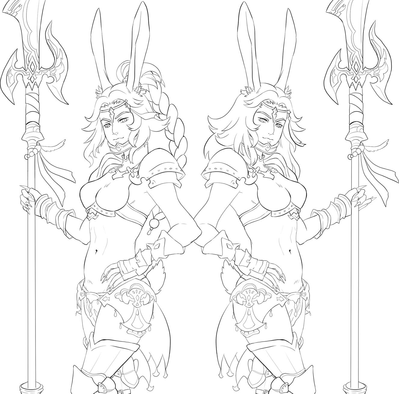 Negative traits: ---Rava was the name Fhjrn's father left her, and the only clue she had to her half-Viera blood. It was thanks to her meeting with Emery that she was introduced to Zula von Dalmasca, who taught her something of where she came from.Since joining the Resistance, Fhjrn has largely given up dancing for Ul'dahns in order to swing an unwieldly hammer in the practise of Green Magic. She now heals the many hurts of the Sun Crest Resistance Unit, but at times she might get carried away and hurt more than she heals.After all, it's so fun to swing a mallet.