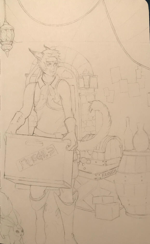 Mikh'li Rabntah grew up in a den nestled in the wooded areas of La Nosea. His parents had started their own clan and beget many, many children -- in the middle of which was Mikh'li, the third son in a litter of 14 kits. He was born with the Mark of Menphina upon his brow, which his parents took as a lucky sign. And so he was protected and sheltered perhaps moreso than the other kits, until the day Mikh'li chanced upon a wandering mage.Mikh'li was banished from his tribe, considered too dangerous to live amongst his family any longer. And so this miqo'te set forth into the wider world, swearing off most magicks and chasing the singular dream of one day meeting the Warrior of Light.His only talents lie in delivering parcels largely unnoticed, boasting the tenacity of a flea, and the ability to summon 3 carbuncles at once. They're not good for much more than company and pop out of existence seemingly at will, and Ruby is particularly temperamental.. but they're the only friends Mikh'li has got.